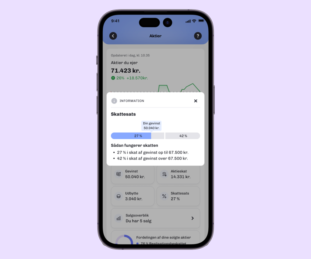 - Nu kan du se dine aktiehandler, udbytte og gevinst/tab i appen.