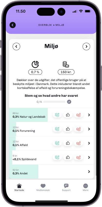 Du kan blive din egen finansminister og give udtryk for, hvorvidt du synes, penge fordeles optimalt. Du kan også se hvad andre danskere mener.